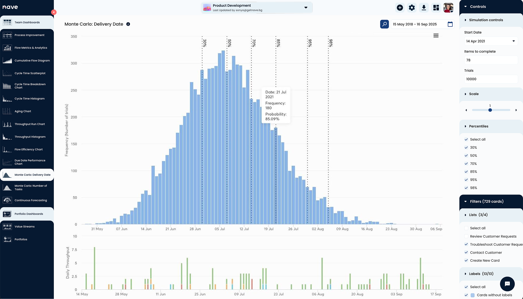 Here at Nave, we have more than 10,000 customers who use probabilistic forecasting to either plan their next releases or predict the delivery date of a project with a fixed scope. This method brings more value than the traditional estimating approach in so many different ways.