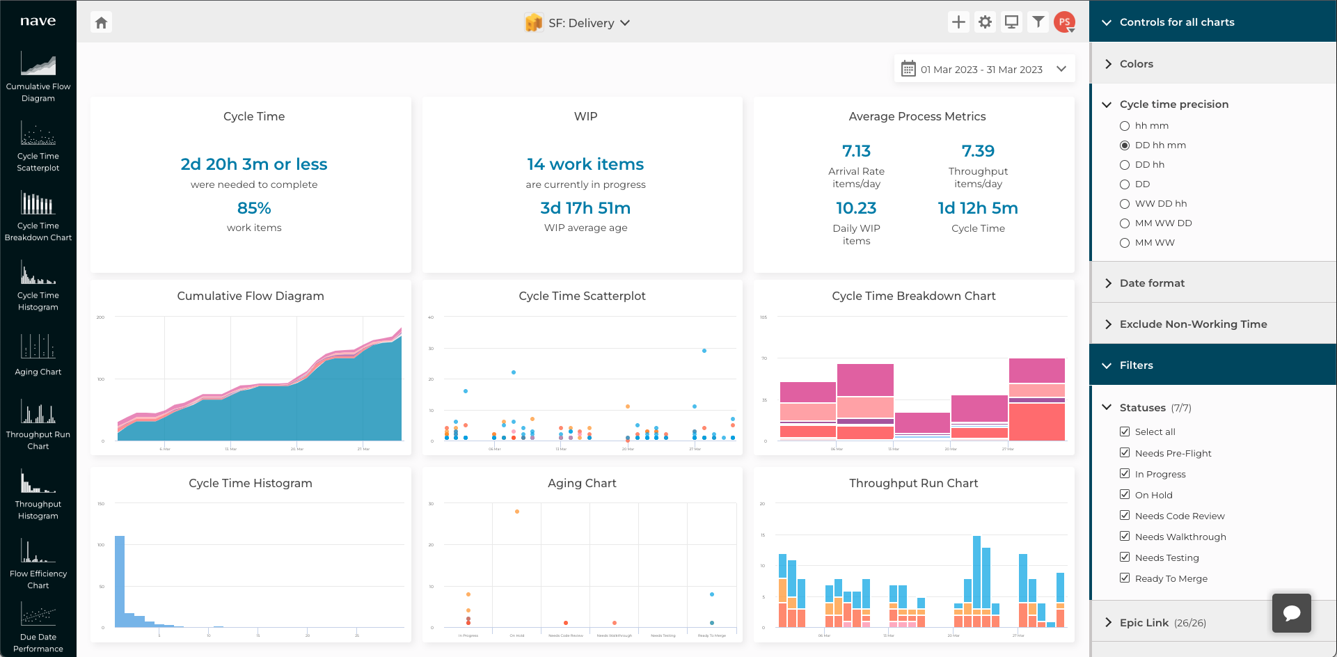 Paul regularly checks Nave’s dashboards to see how his team’s flow metrics change.