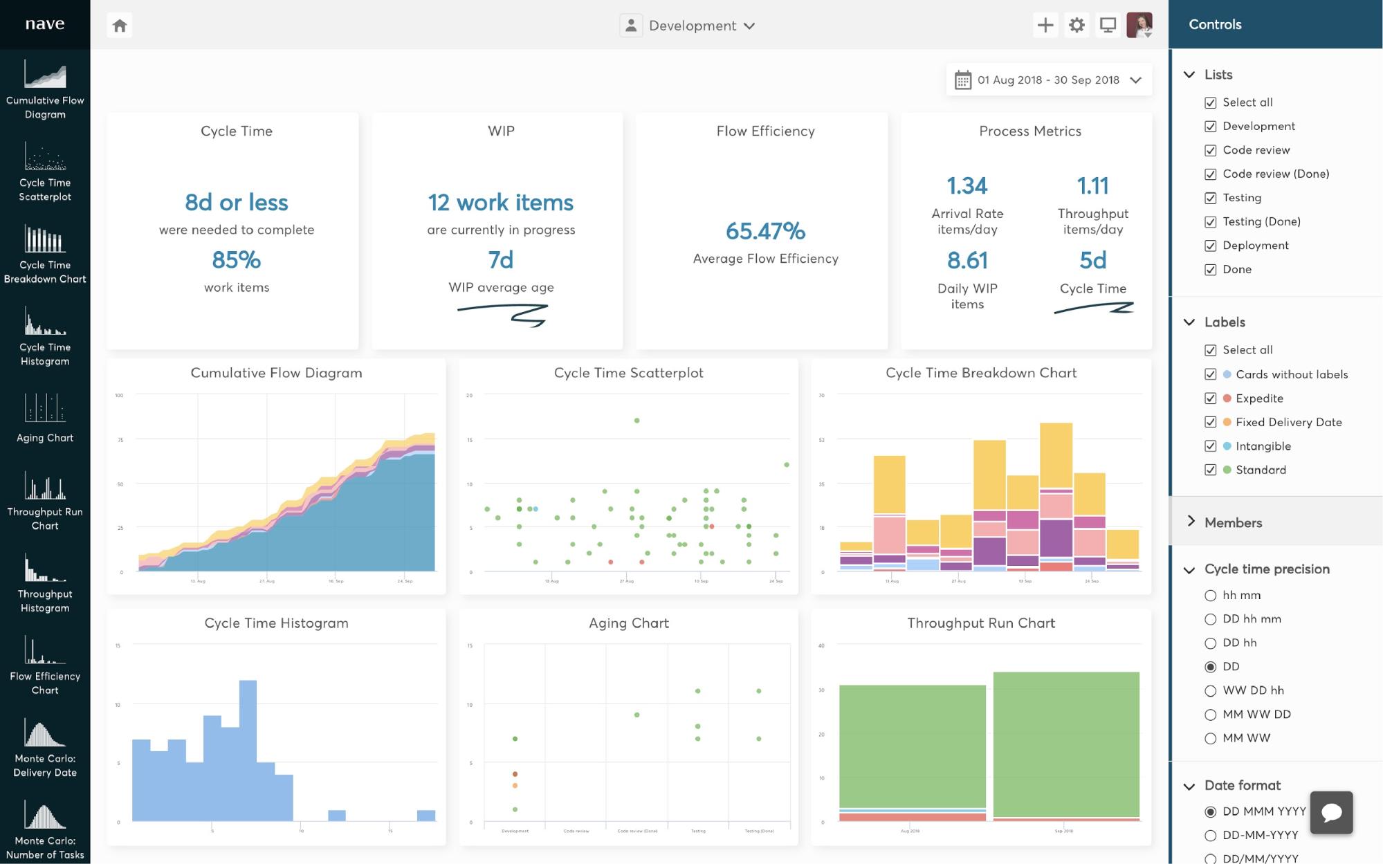 Your cycle time metric doesn’t take into account your current WIP. Although you might have a very low average cycle time, if your tasks sit and age in the process, and eventually get released at a later stage, your average cycle time will skyrocket. This is why it is so important to track your average age of WIP, and regularly compare it against your average cycle time.